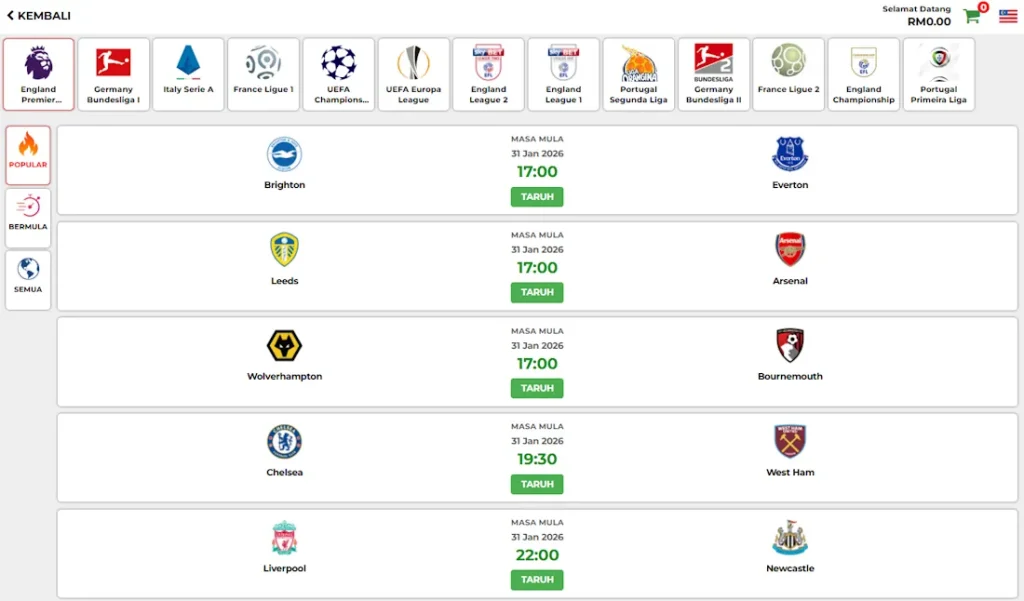 Sports bettors will appreciate the competitive odds and extensive market coverage, especially for football and other sports popular in Malaysia. The in-play betting platform operates smoothly with minimal delays, making it suitable for serious bettors who value timing and market responsiveness.